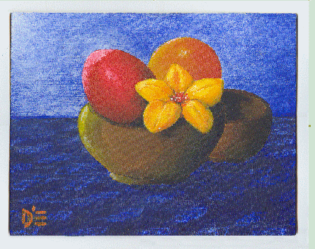 "Still life with fruit and flower" Acrylic on 10 X 12 board canvas